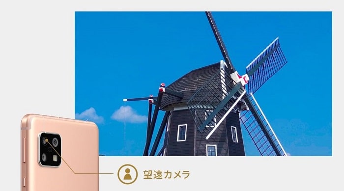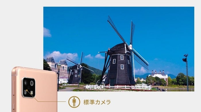 最近は三眼カメラを備えたスマホが増えましたが、AQUOSも広角・標準・望遠と3つのカメラを備えています。