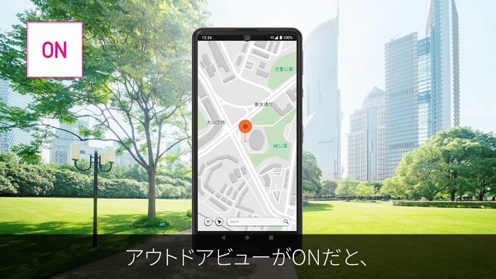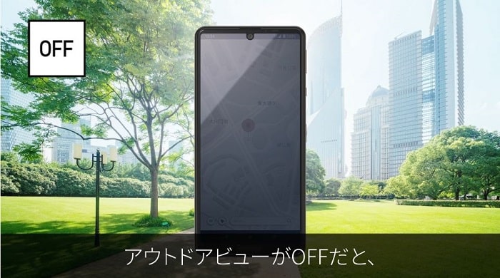 AQUOSは液晶がキレイで見やすいのですが、それだけでなく、屋外でも地図アプリ等の画面が見やすくなる「アウトドアビュー」機能があるのです。