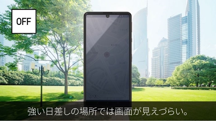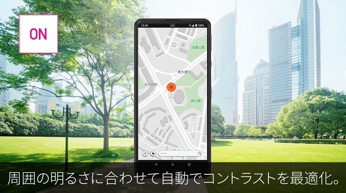 画面のコントラストやバックライトの輝度を自動調整し、屋外でも画面が見やすくなるという優れモノ。